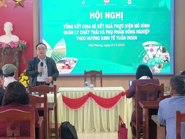 Trong khuôn khổ nhiệm vụ KHCN của Bộ Nông nghiệp và Môi trường: “Nghiên cứu giải pháp quản lý hiệu quả chất thải và phụ phẩm nông nghiệp theo hướng kinh tế tuần hoàn vùng đồng bằng sông Hồng trên cơ sở triển khai tại tỉnh Hải Dương”, ngày 09/12/2025, tại Hội trường trường Tiểu học Hưng Đạo, xã Đại Sơn, thành phố Hải Phòng, phối hợp với Sở Nông nghiệp và Môi trường, UBND xã Đại Sơn, Nhóm Nghiên cứu mạnh Quản lý Phát triển nông thôn đã tổ chức Hội nghị tổng kết chia sẻ kết quả mô hình quản lý chất thải và phụ phẩm nông nghiệp theo hướng kinh tế tuần hoàn.