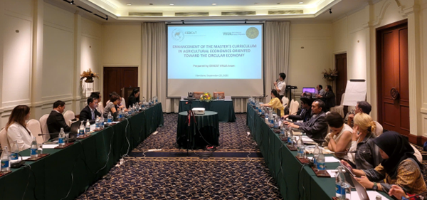 Đặc biệt, chuyến tham quan học tập lần này nhấn mạnh vào thảo luận tình hình triển khai các hoạt động của dự án liên quan đến việc xây dựng và cải tiến chương trình đào tạo theo hướng kinh tế tuần hoàn, với trọng tâm trước mắt là chương trình đào tạo thạc sĩ về Kinh tế tuần hoàn. Trên cơ sở đó, các chuyên gia đến từ Lào, Indonesia và Việt Nam đã lần lượt trình bày các phương án xây dựng chương trình, nội dung đào tạo, phương pháp giảng dạy, công cụ hỗ trợ cũng như các chỉ tiêu đánh giá nhằm bảo đảm chất lượng của chương trình thạc sĩ trong lĩnh vực này.