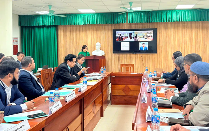Trong khuôn khổ hợp tác giữa Học viện Nông nghiệp Việt Nam (VNUA) và Học viện Công nghệ Châu Á (AIT), Thái Lan, ngày 5/11/2025, Bộ môn Kinh tế Nông nghiệp & Chính sách, Khoa Kinh tế & Quản lý đã tiếp đón đoàn cán bộ của AIT sang thăm và làm việc tại Học viện. Tham dự chương trình, về phía Khoa Kinh tế và Quản lý có PGS.TS. Nguyễn Thị Minh Hiền - trưởng Khoa, TS. Lưu Văn Duy – Phó trưởng Bộ môn Kinh tế Nông nghiệp & Chính sách cùng toàn thể giảng viên của Bộ môn. Về phía AIT, thành phần đoàn bao gồm 3 chuyên gia của AIT, do TS. Fazle Karim là trưởng đoàn cùng 14 cán bộ Cục phát triển Hạ tầng trực thuộc Chính phủ Bangladesh.