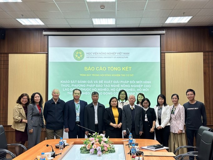 Trong khuôn khổ nhiệm vụ khoa học và công nghệ của Bộ Nông nghiệp và Môi trường: “Khảo sát, đánh giá và đề xuất giải pháp đổi mới hình thức, phương pháp đào tạo nghề nông nghiệp cho lao động thuộc hộ nghèo, hộ cận nghèo, hộ mới thoát nghèo và người có thu nhập thấp”, ngày 19/12/2025, tại Phòng Hoa Sứ, Tòa nhà Trung tâm, Học viện Nông nghiệp Việt Nam đã diễn ra buổi nghiệm thu cấp cơ sở theo Quyết định số 6101/QĐ-HVN ngày 12/12/2025 của Giám đốc Học viện Nông nghiệp Việt Nam.